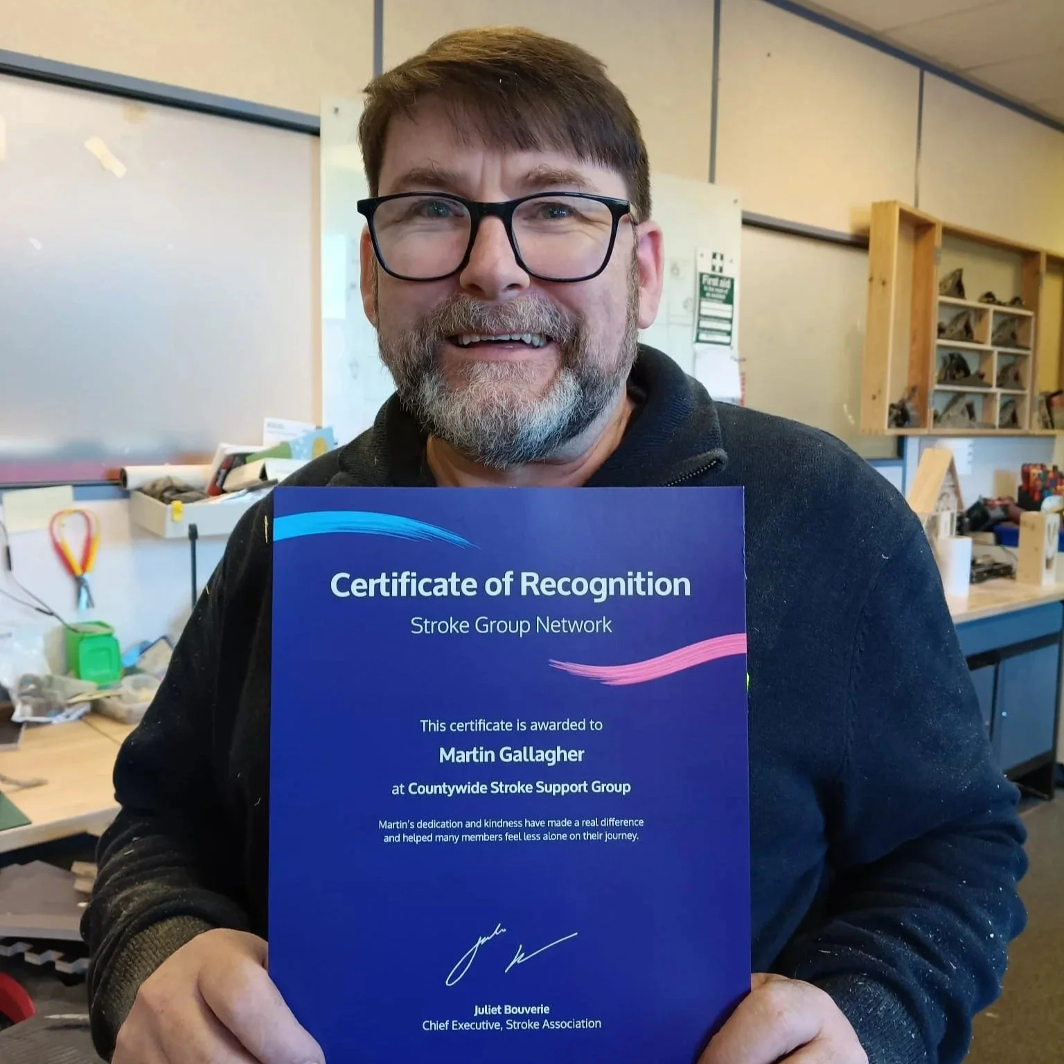 We are delighted to recognise Martin Gallagher, who has received a Certificate of Recognition from the Stroke Association Group Network Recognition Award.